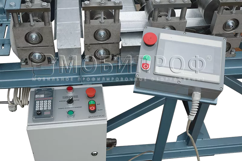 Линия для производства профиля для гипсокартона состоит из профилегибочного модуля, стационарной (стационарный рез) или летучей (летучий рез) пневматической гильотины для поперечной резки изделия после процесса профилирования, автоматической системы управления (АСУ). Опционально сенсорная панель оператора к АСУ значительно облегчает процесс ввода и контроля параметров, а также позволяет вносить в память станка до 10 различных программ производства (длина и количество профилей). Дополнительно на профильный станок можно установить устройство для нанесения насечек на профиль ПП 60х27, а также устройство пробивки отверстий на профиле ППН 28х27.